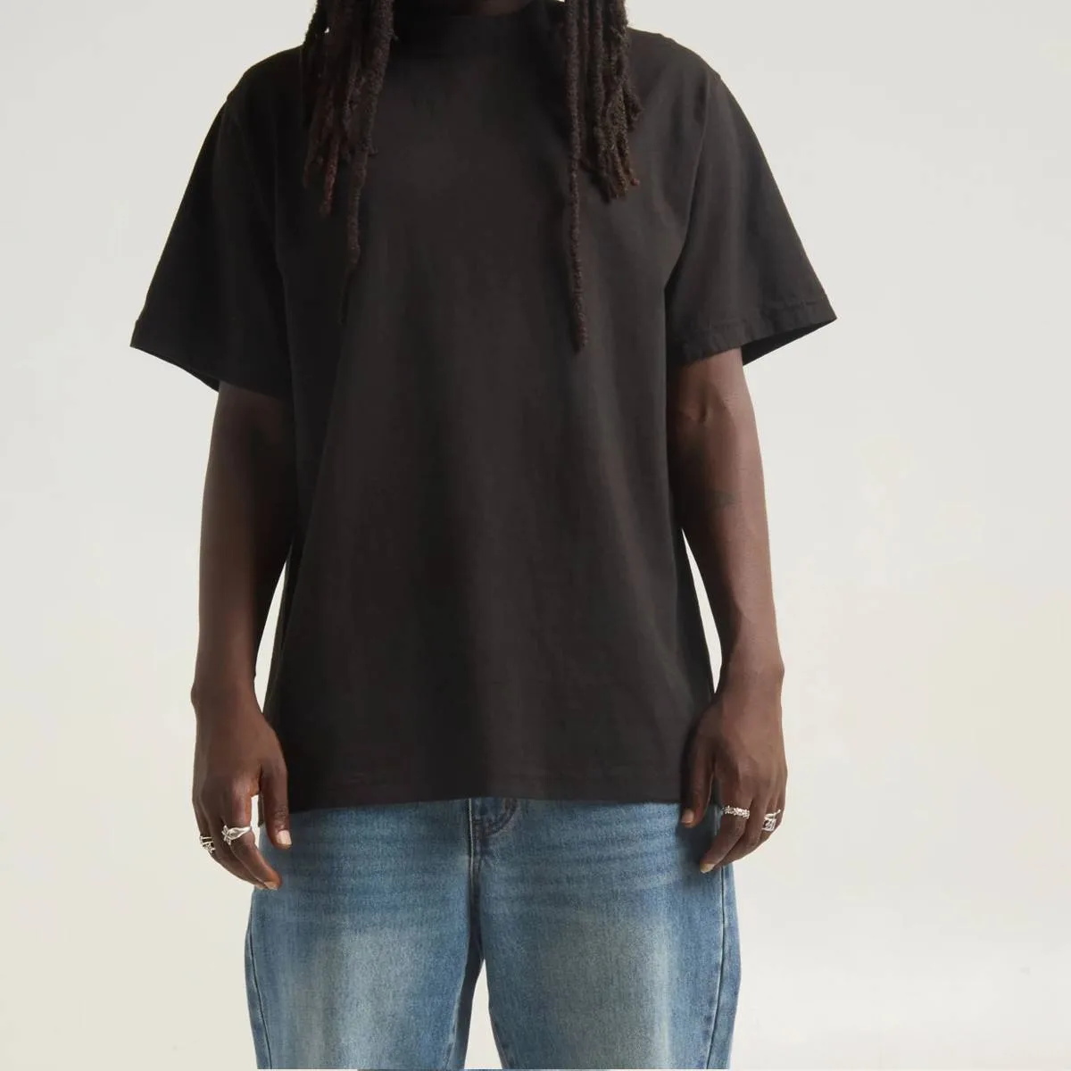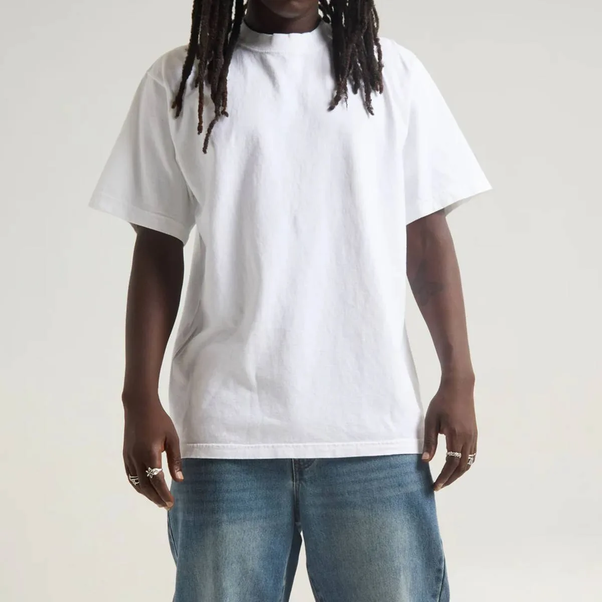 The Max Heavyweight Standard: Shakawear is world-renowned for our signature 7.5 oz Max Heavyweight Tee. This isn’t just a shirt; it’s a statement. The thick, dense fabric provides a structured silhouette that maintains its shape, offering that iconic “stiff” look favored by street culture icons.